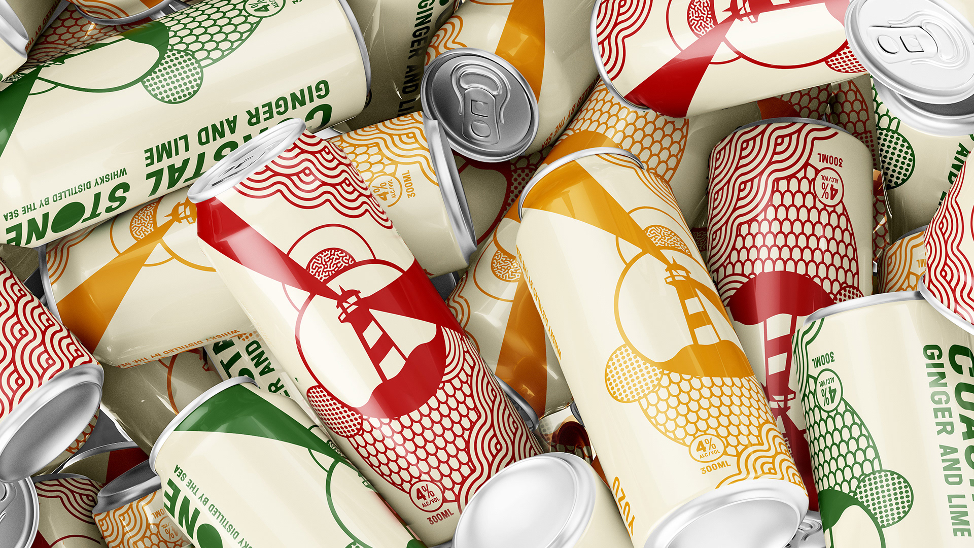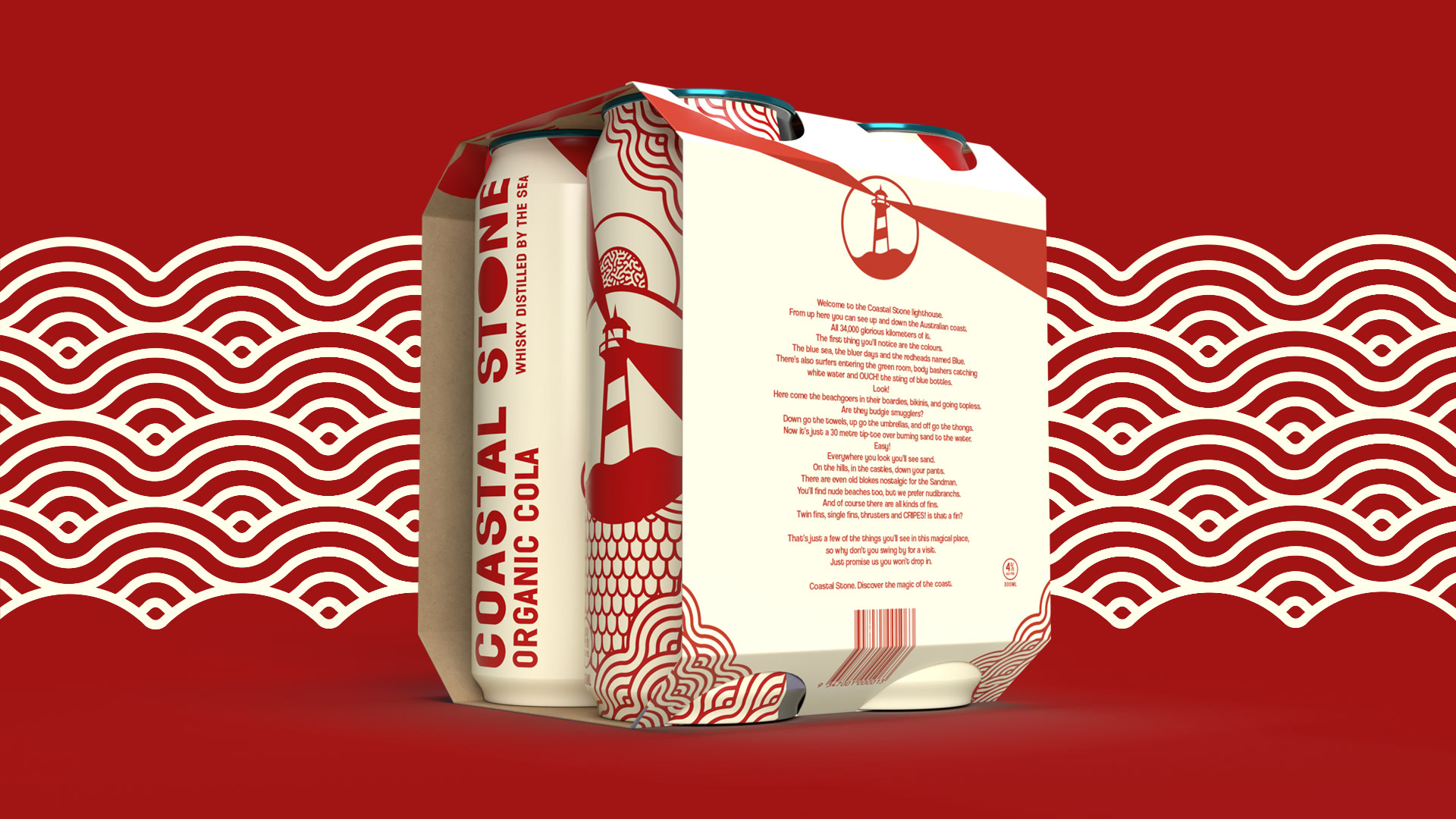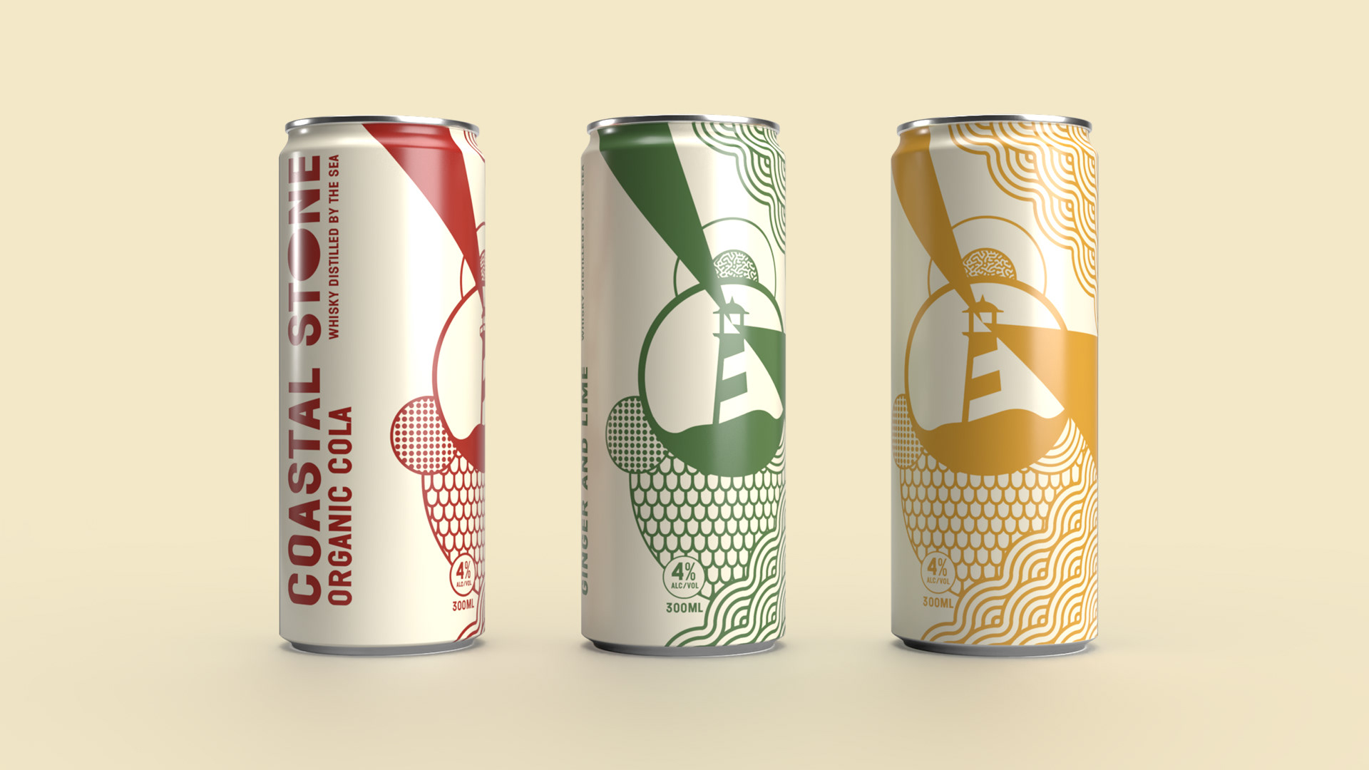 The design celebrates the spirit of the coast through bold simplicity and geometric storytelling. The lighthouse anchors the composition, while surrounding wave and texture patterns symbolise the movement of the sea, energy, and discovery. Each flavour is expressed through a single vivid colour, creating strong shelf standout and instant flavour recognition: